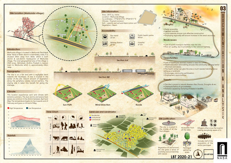 This proposal for a Primary Health Centre in Markunda, Bidar is rooted in the ethos of circular design, community well-being, and contextual responsiveness. The design leverages local materials, vernacular techniques, and bioclimatic strategies to create a healthcare space that is both economically accessible and environmentally regenerative.